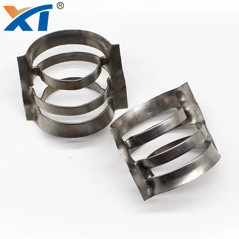 XINTAO Metal conjugate ring is a kind of filling material with metal as raw material, which is one of the most advanced and effective types of metal filling materials. Metal conjugate ring is a new type of ring and saddle shaped packing which makes up for its shortcomings. Compared with the metal rectangular saddle ring, it has higher efficiency and stronger characteristics.